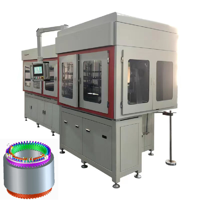 IlMacchina di avvolgimento a spillo completamente automatizzataè progettato per fornire un'eccezionale precisione e efficienza di avvolgimento per statori a filo piatto.questa macchina dispone di un controllo PLC avanzato e di un'interfaccia touchscreen user-friendly, garantendo un funzionamento senza interruzioni e un monitoraggio in tempo reale.